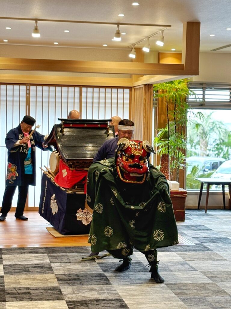昨年のお正月の獅子舞の風景でございます。毎年1月2日の 地元の獅子舞保存会の方々がお越しくださり このように 素晴らしいパフォーマンスを披露してくださいます。