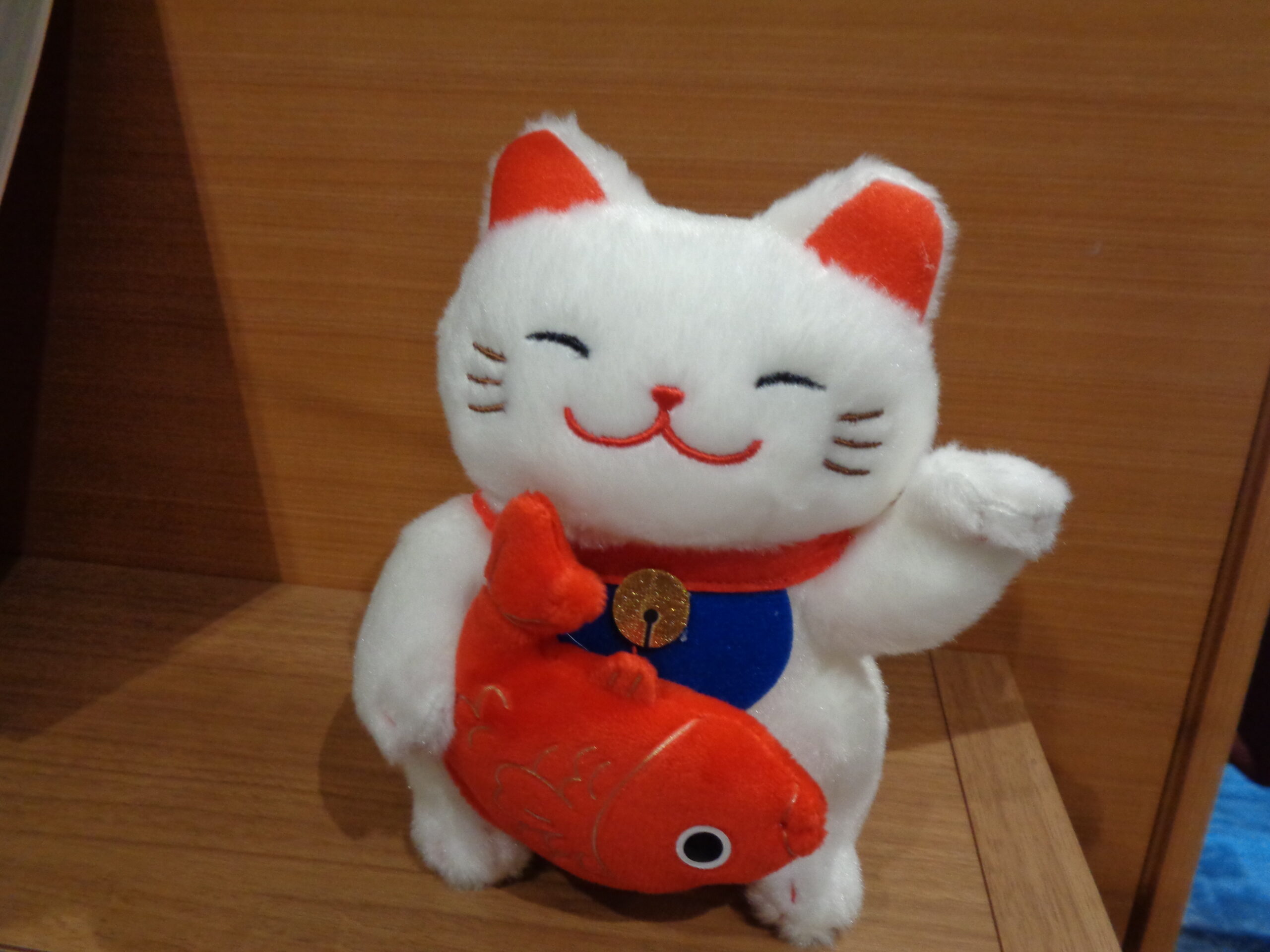 数年前から 宿 中屋におります「招き猫」でございます。お客様からいただいたものでございますが、久谷焼で この可愛らしさ ずっと宿中屋を見守ってくれていました。