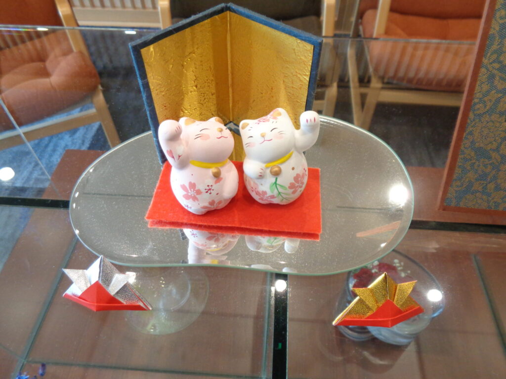 館内の桜を探していただいたあとは、館内にある「招き猫」を見つけていただいております。